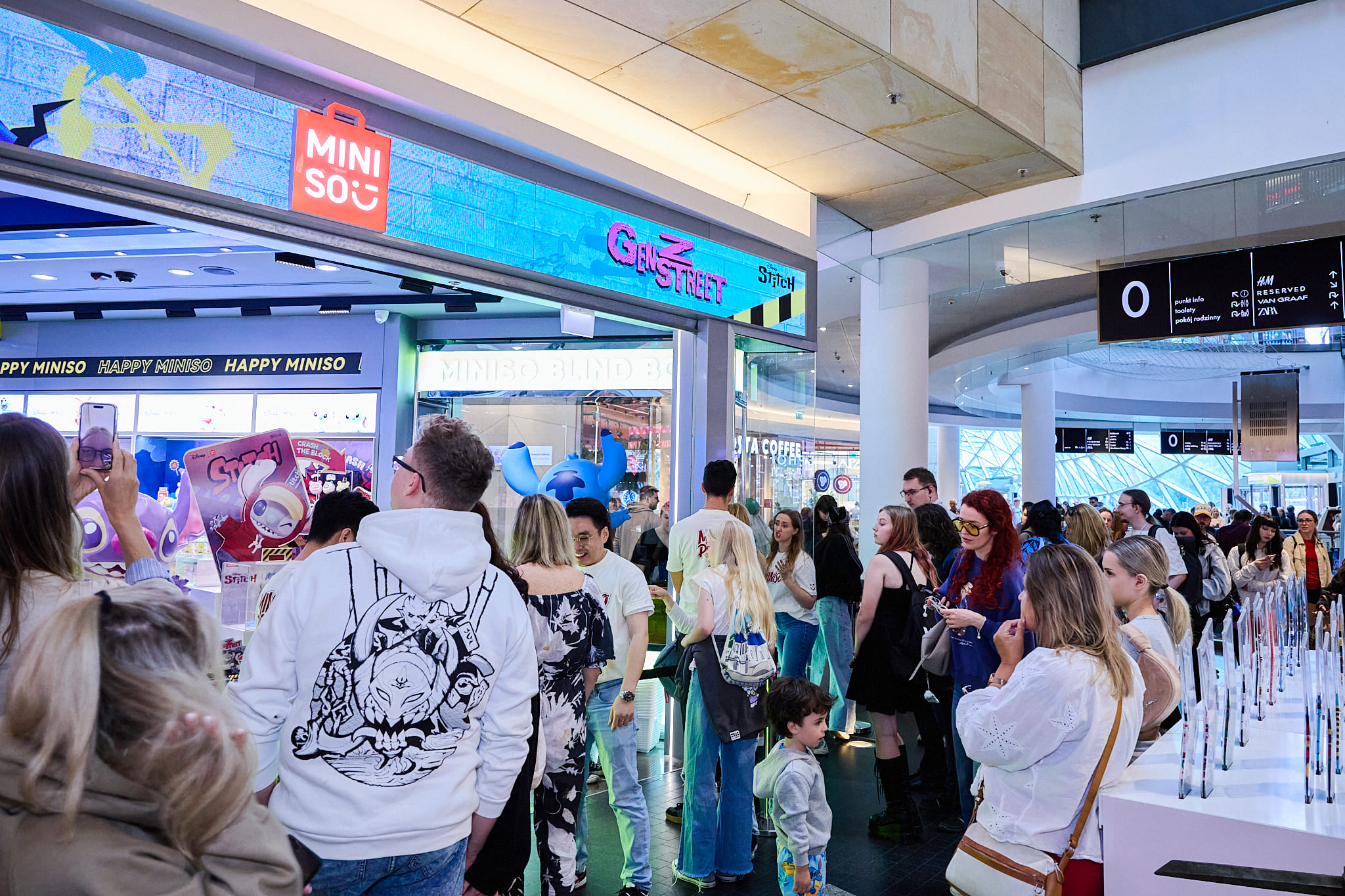 Inside, the store features a curated selection of MINISO’s most popular collectible toy lines, including its blind box series, mini collectibles series, and vinyl plush toys. Highlights include the Stitch “Gen Z Street” and “Eat Something Before Sleep” series, as well as popular character lines from global IPs such as Sanrio and Harry Potter. The immersive experience is enhanced by a large Stitch figure set in the storefront window, and a futuristic blue color scheme with metallic finishes, light-reactive materials and golden terrace elements that echo the mall’s iconic wave-shaped glass roof.