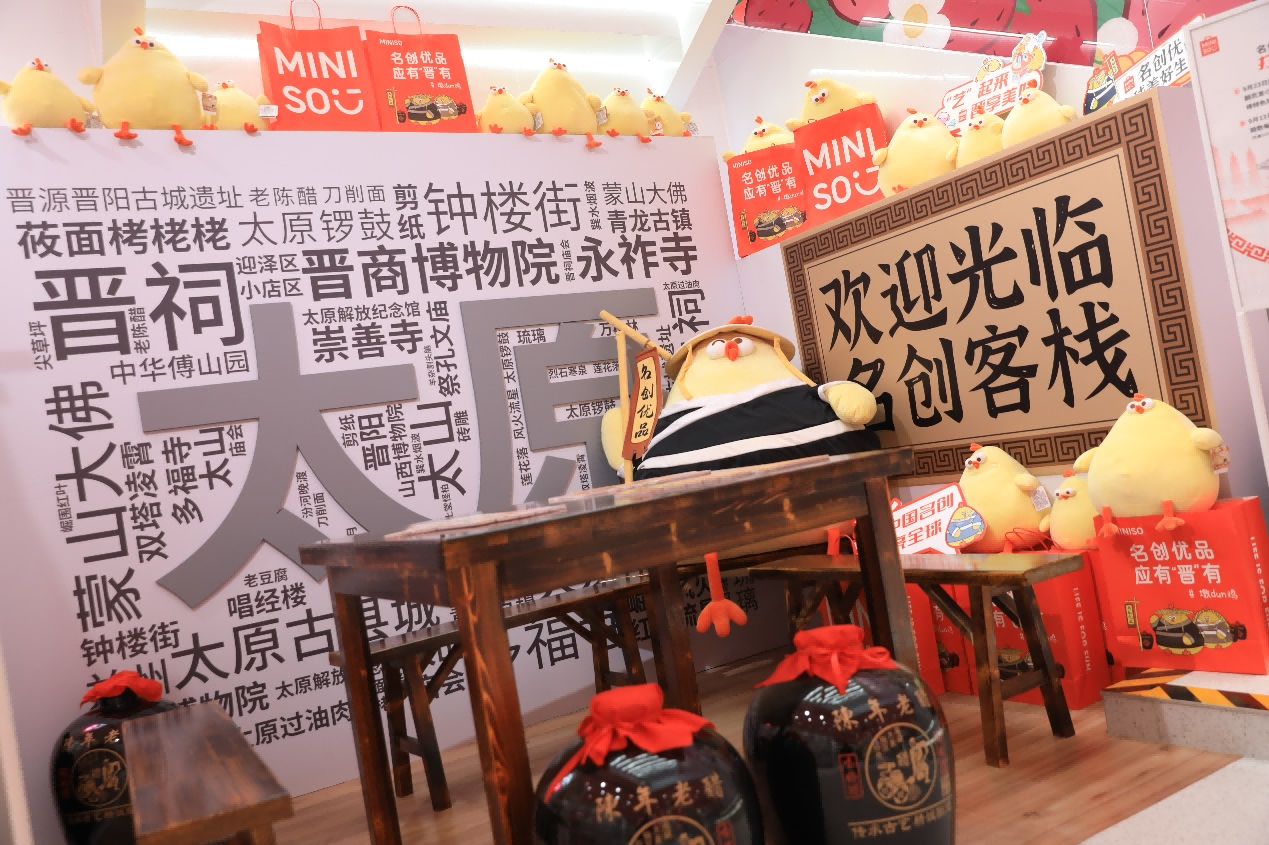 近几年,IP联名与超级门店的打造逐渐成为名创优品的着力点,此次太原城市形象店将晋城的特色客栈元素和自有IP DUNDUN鸡做了有机且‘沉浸式’的结合。DUNDUN鸡是名创优品孵化的原创IP,自2022年6月推出以来迅速走红,在抖音、小红书两个社交平台上的相关话题浏览量累计超2亿。