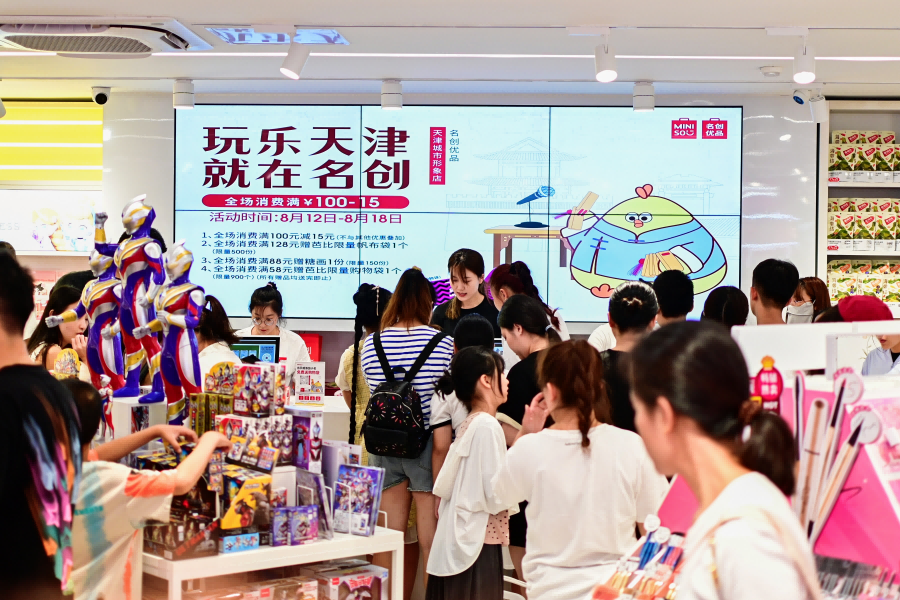 据悉,名创优品天津城市形象店占地385平方米,拥有超3800个SKU,涵盖彩妆香水、个护、盲盒、食品和生活百货等多个品类。开业期间,该店融入天津本地化的文化元素和城市特色,策划“你好天津”打卡墙、“快板墩dun鸡”、“天津特色糖画”、“墩dun鸡粘土DIY活动”、“名创茶馆”打卡点、 “快闪舞蹈”以及快板互动等开业活动,为消费者营造了满满天津风味的沉浸式购物体验,拉近品牌与消费者距离的同时,成为推动名创优品规模化发展的“利器”。名创优品方面透露,该店开业首日的业绩环比试营业周六增长超140%。