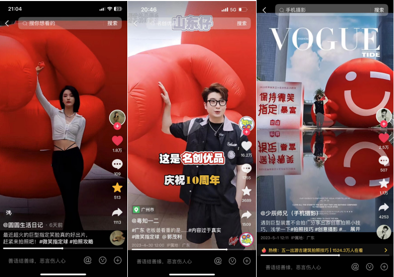 4月28日至5月8日,广州花城汇中区下沉广场惊现巨型的“指定美好球”装置,这是名创优品在品牌十周年暨世界微笑日发起的“保持微笑 指定美好”活动,旨在为消费者送上指定的美好祝福,让大家在玩乐中定义自己的小美好,据了解,本次微笑日“指定美好球”在五一期间成为了旅游热门打卡点,相关话题在社交平台曝光超10亿,大量网友参与互动和讨论,引发刷屏效应。
